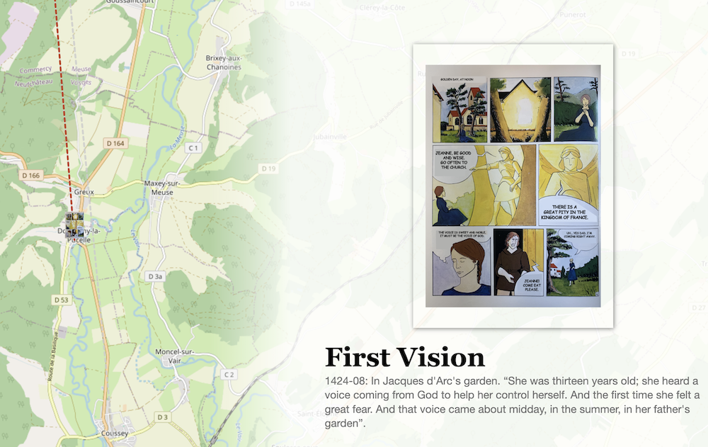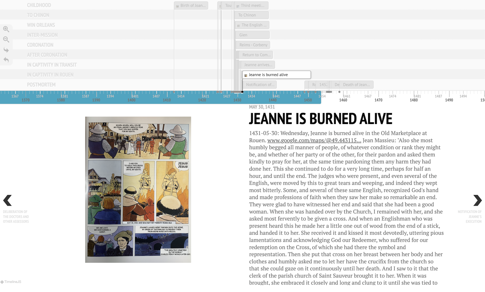 Jeanne d'Arc comic book with timeline and geographical coordinates!